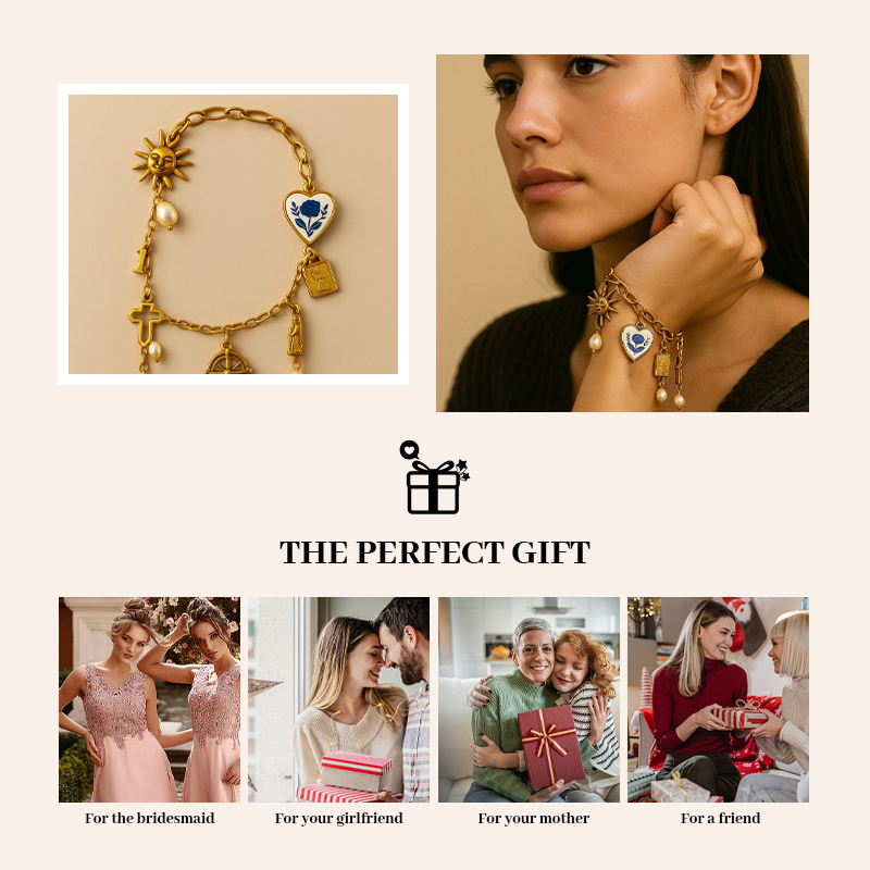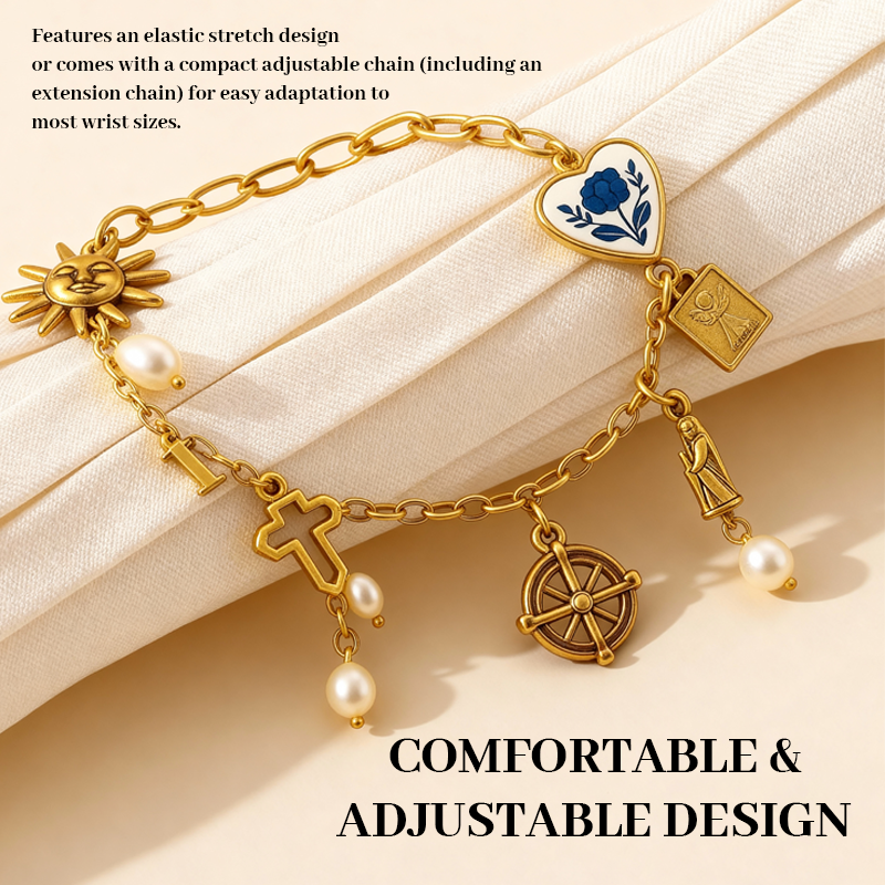 - ✝️ Meaningful Symbolism — Each bracelet combines faith symbols like the cross, gentle pearl pendants (symbolizing purity), radiant sun charms (light & hope), and heart motifs (love & compassion). These motifs are thoughtfully arranged so the bracelet reads like a small, wearable devotion.