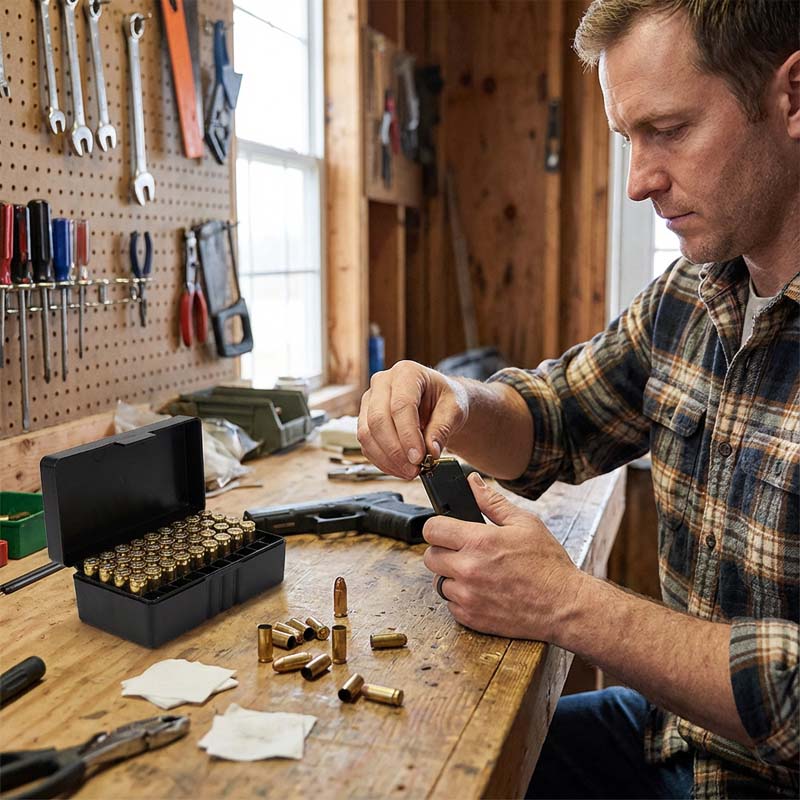 - Keeps bullets neatly separated and aligned, preventing rolling, mixing, or clutter 💡