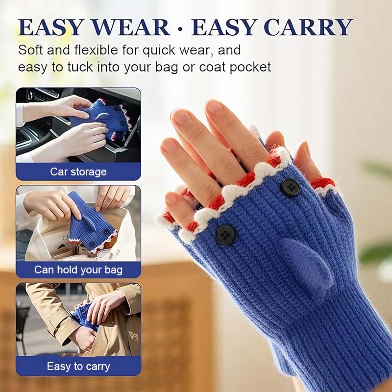 Shark Bite Knit Fingerless Gloves: Playful Style Meets Daily Convenience 🦈